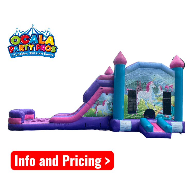- Step into a world of whimsy and wonder with our Unicorn Bounce House with Slide! This magical inflatable is a perfect addition to any celebration, promising an enchanting experience for children and a touch of fantasy for your event.